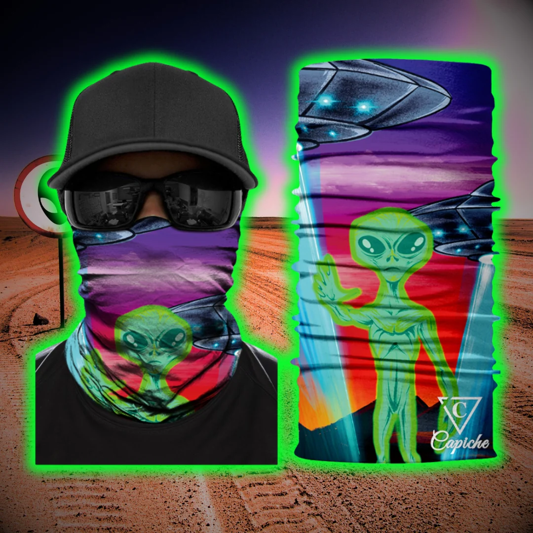 You can perfectly match the Alien Invasion biker mask with the corresponding Alien Invasion snapback and elevate your look to a next level! Or you can choose the other 3 alien snapback hats to combine the Alien Invasion biker mask with.