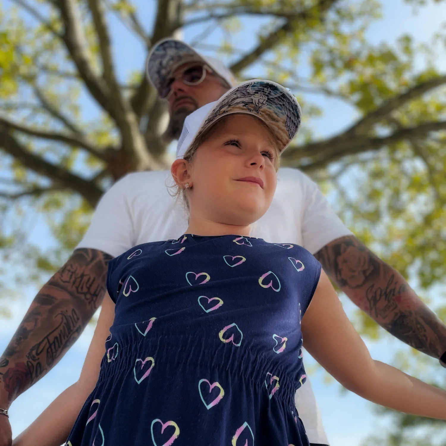 Father & Kid Set Pegasus in trucker caps.
